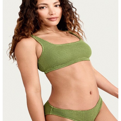 Crinkle Textured Scoop Neck Bikini Top in Green