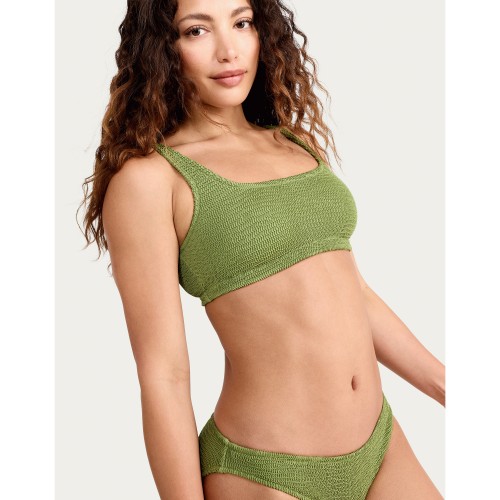 Crinkle Textured Scoop Neck Bikini Top in Green