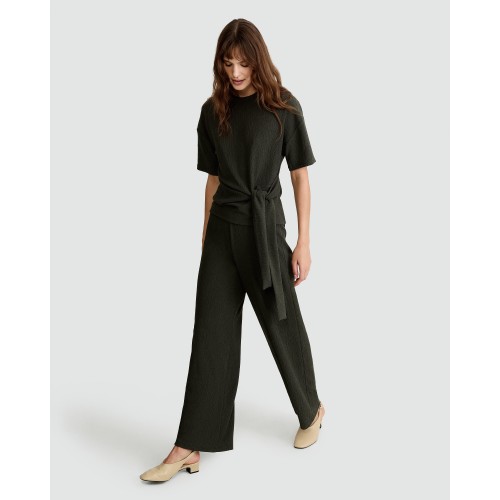 Crinkle Wide Leg Co-ord Trousers in Olive