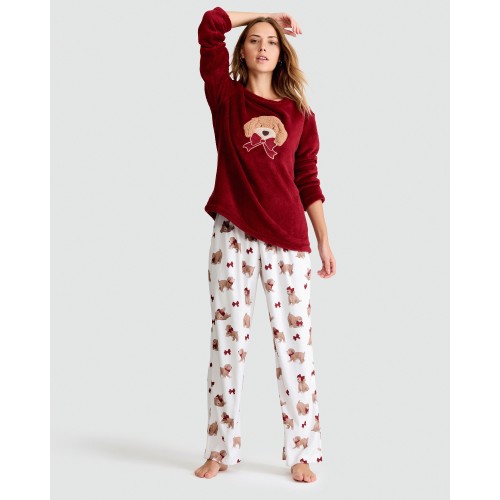 Curtis The Dog Fleece Top and Bottoms Pyjamas in Red