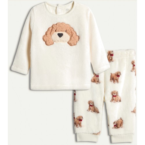 F&F Curtis The Dog Motif Baby Fleece Pyjamas in White