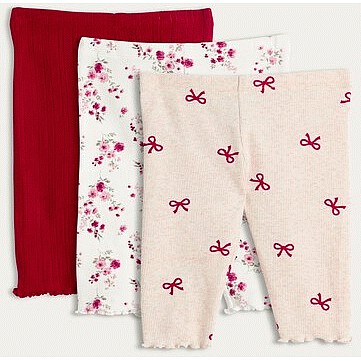 3-Pack Cotton Rich Floral and Bow Print Leggings in Red