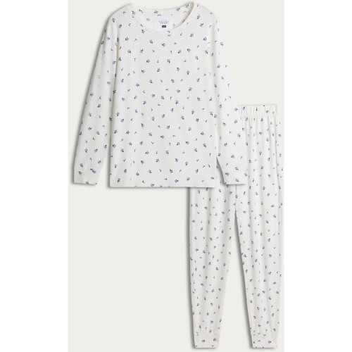 Star Print Shirt and Bottoms Pyjama Set in Cream