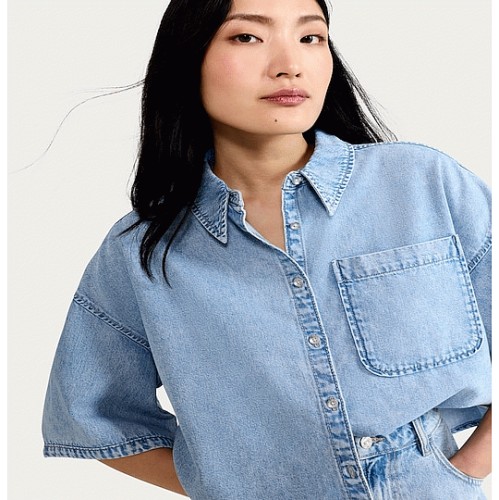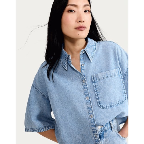 Denim Cropped Oversized Shirt in Blue