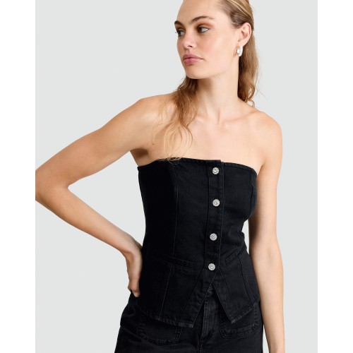 Striped Bodysuit and Denim Dungarees Set in Blue