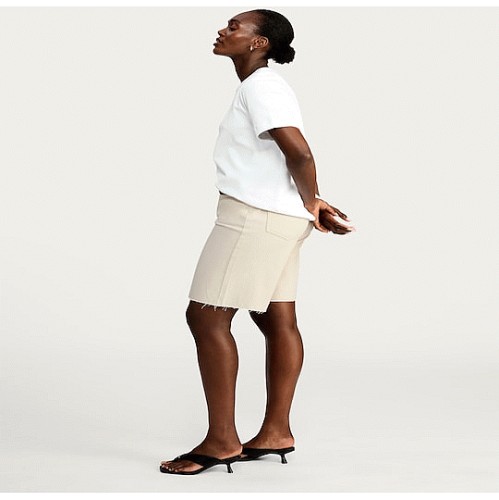 Raw Hem Denim Bermuda Shorts in Ecru