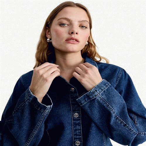 Denim Barrel Sleeved Shirt in Blue