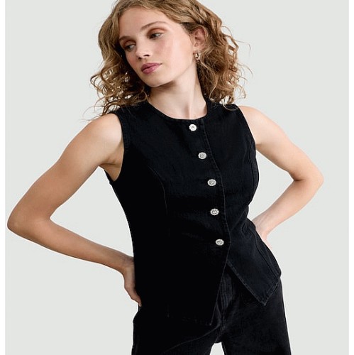 Denim Buttoned Waistcoat in Black