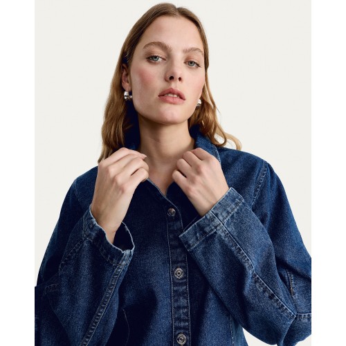 Denim Cropped Oversized Shirt in Blue