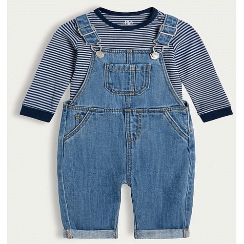 Striped Bodysuit and Denim Dungarees Set in Blue
