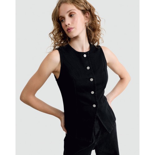 Pure Cotton Button Up Denim Waistcoat in Multi
