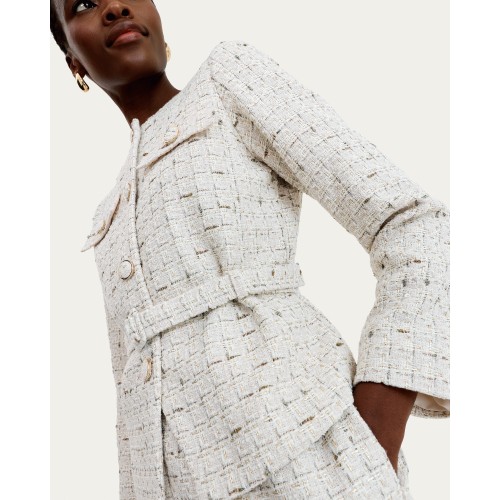 Boucle Textured Belted Co-ord Jacket in Cream
