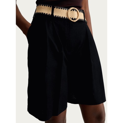 Pleated Belted Shorts in Black