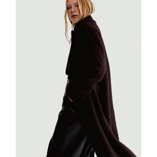 Faux Suede Double Breasted Longline Trench Coat in Brown
