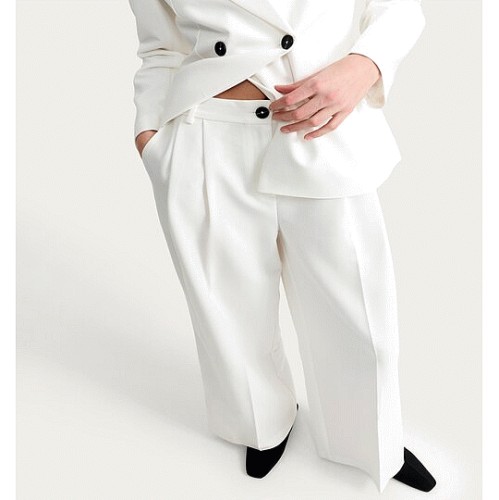 Tailored Super Wide Leg Pleated Co-ord Trousers in Cream