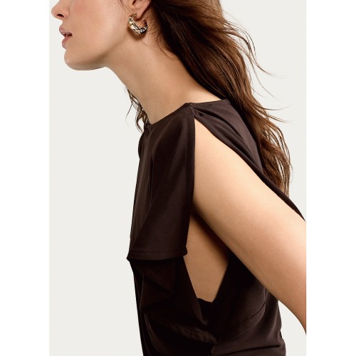 Draped Flutter Sleeve Top in Chocolate