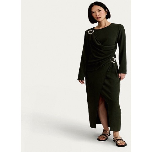 Draped Metal Buckle Long Sleeved Co-ord Top in Khaki