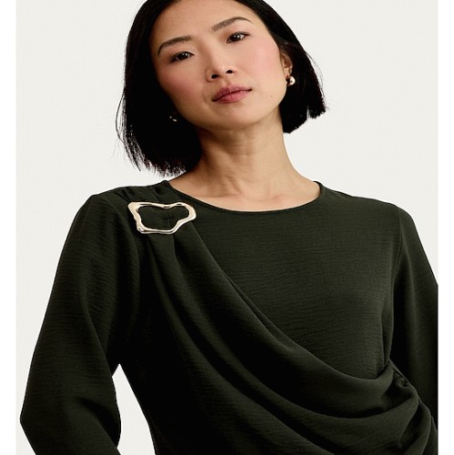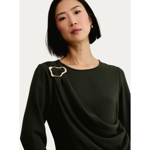 F&F Draped Metal Buckle Long Sleeved Co-ord Top in Khaki