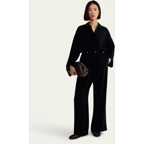 Drawstring Waist Wide Sleeved Shirt in Brown