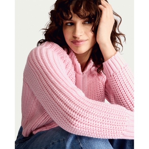 Pure Cotton Knitted Button Front Hooded Cardigan in Multi Pink