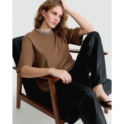 Cotton Rich Crew Neck Long Sleeved Top in Burgundy