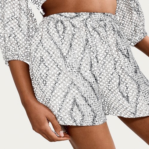 Mono Print Co-ord Beach Shorts in Multi Black White