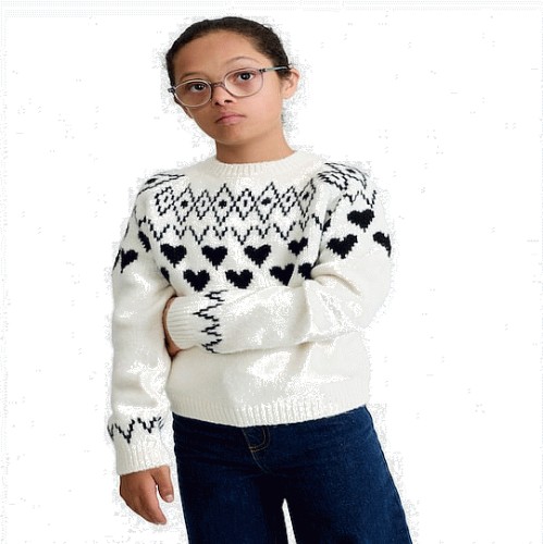 F&F Girls Heart Fair Isle Print Jumper in Multi Black White