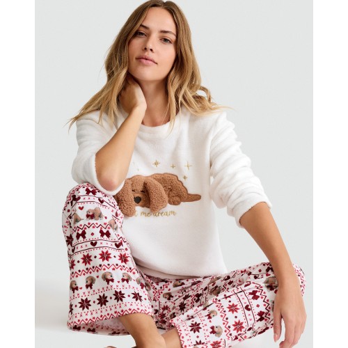 Fair Isle Print Top and Joggers Pyjamas in Cream