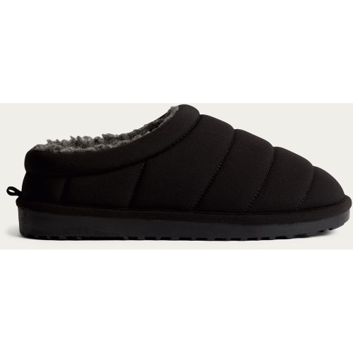 Boys Padded Faux Fur Lined Mule Slippers in Black