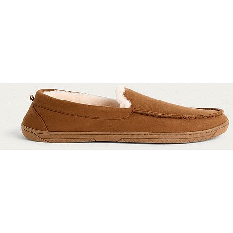 Faux Fur Lined Moccasin Slippers in Tan