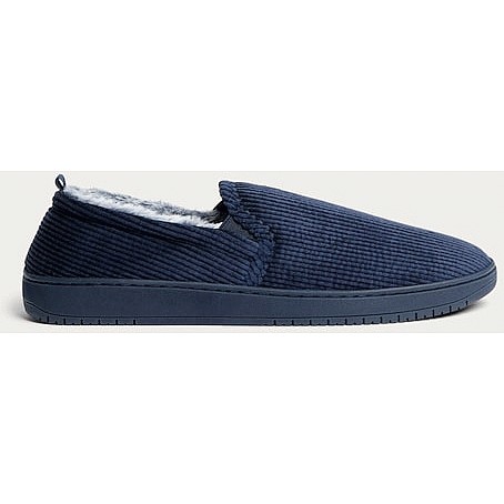 Corduroy Faux Fur Lined Slippers in Navy