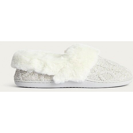 Cable Knit Faux Fur Lined Slippers in Grey