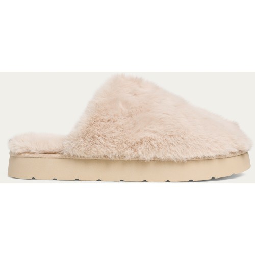 Faux Fur Mule Slippers in Neutral