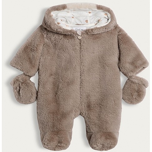 Faux Fur Bear Hooded Pram Suit in Brown
