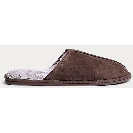 Faux Suede Fur Lined Mule Slippers in Brown