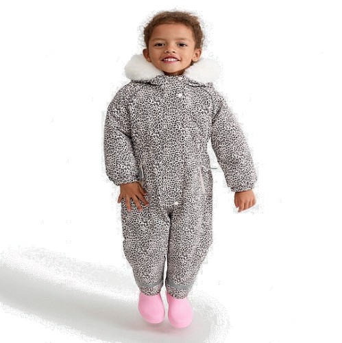 F&F Girls Leopard Print Faux Fur Hooded Waterproof Snowsuit in Multi Brown