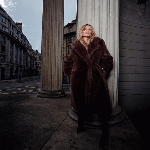 Faux Fur Longline Coat in Brown