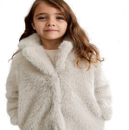F&F Girls Faux Fur Coat in Cream