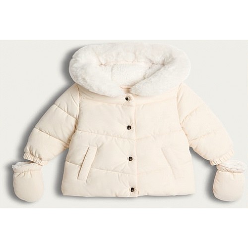 Faux Fur Hooded Padded Jacket in Cream