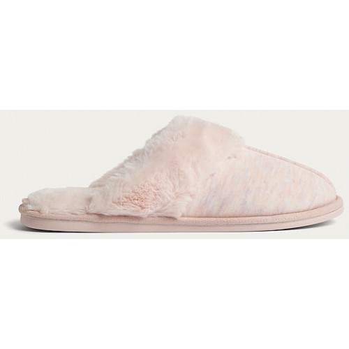 Faux Fur Mule Slippers in Pink