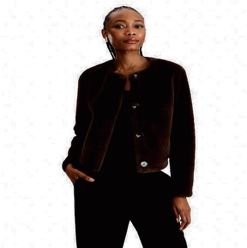 Faux Fur Cropped Buttoned Jacket in Brown