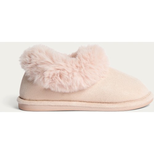 F&F Faux Fur Trim Quilted Slippers in Brown