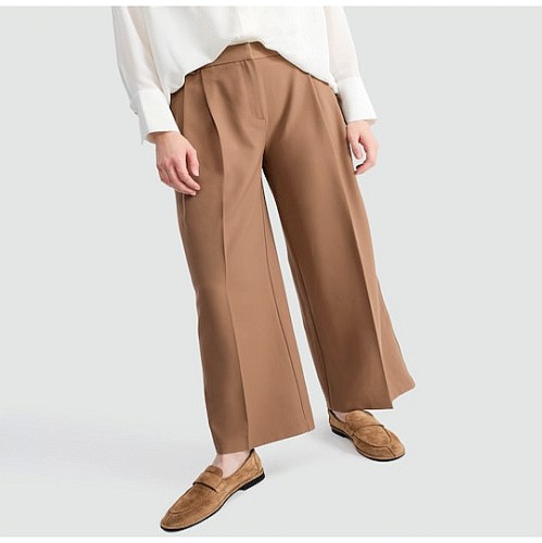 Wide Leg Side Stripe Pleated Trousers in Med Nude