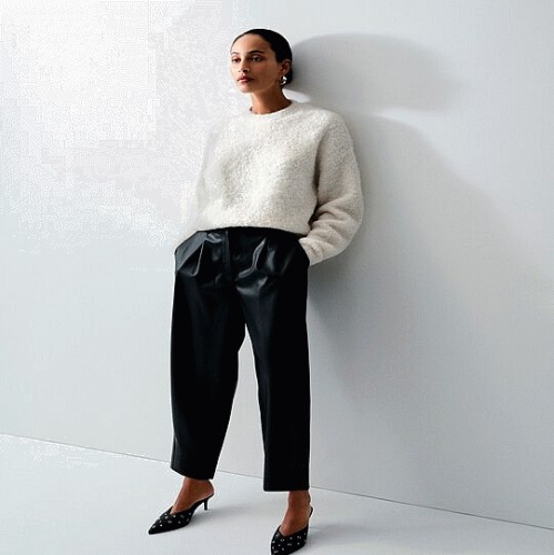 The F&F Edit Faux Leather Wide Leg Drawstring Trousers in Black