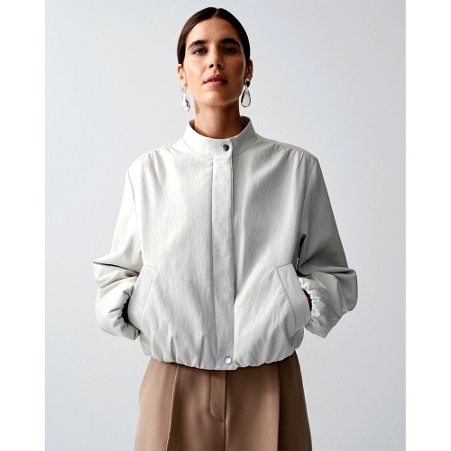 Faux Leather Bubble Hem Jacket in Cream