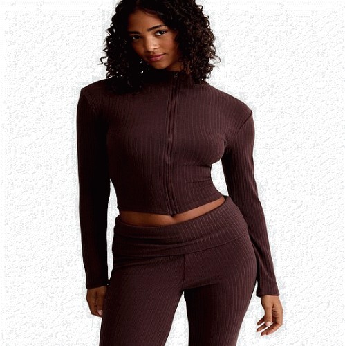 OH ME OH MY Ribbed Zip Up Co-ord Jacket in Brown