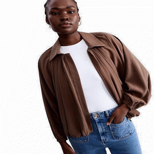 Faux Leather Bubble Hem Zip Up Jacket in Brown