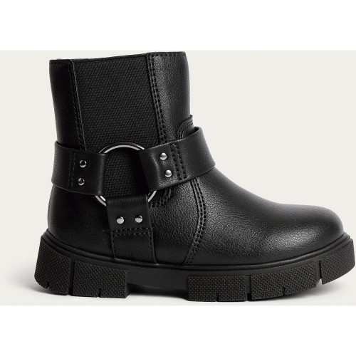 Girls Strap Buckle Detail Chunky Ankle Boots in Black