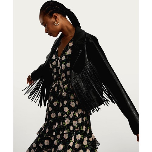 Faux Leather Bubble Hem Zip Up Jacket in Brown