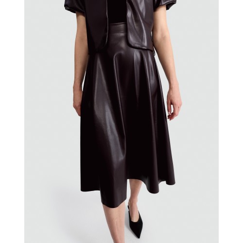 Faux Leather Co-ord Midi Skirt in Burgundy